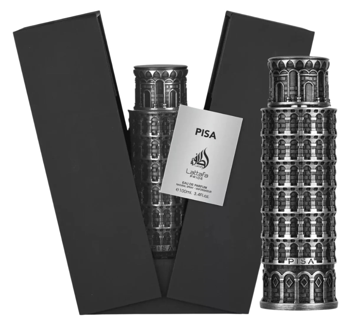 Pisa by Lattafa Perfumes is a Aromatic Fruity fragrance for men. This is a new fragrance. Pisa was launched in 2024. Top notes are Mandarin, Lemon and Bergamot; middle note is Cedar; base notes are Sandalwood and Amber.